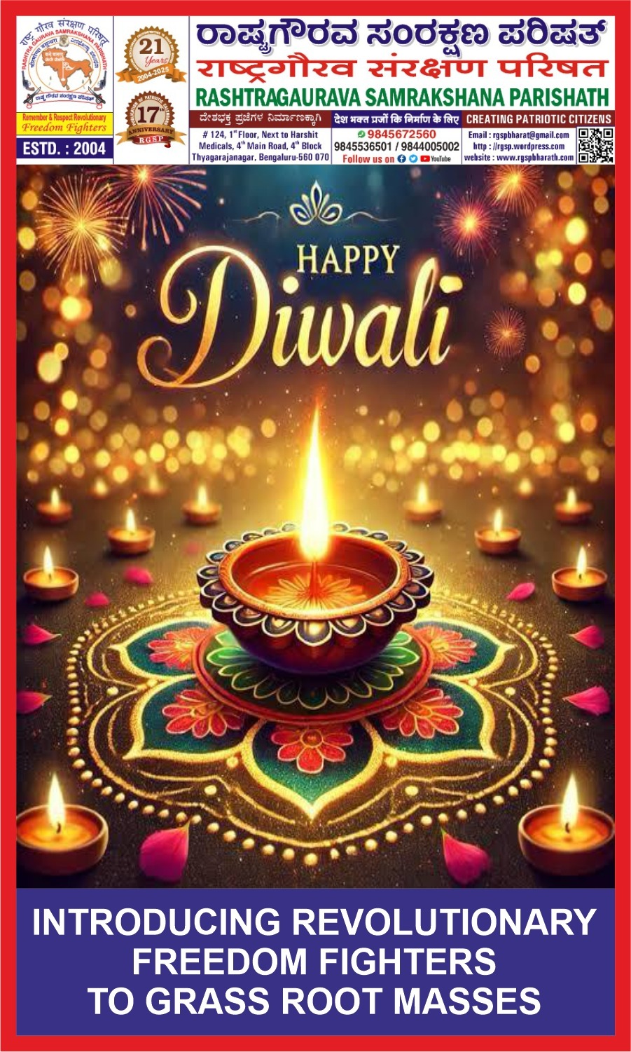 ಕತ್ತಲನ್ನು ದೂರ ಸರಿಸಿ ಬೆಳಕನ್ನು ನೀಡುವ ದೀಪದಂತೆ ನಾವೆಲ್ಲರೂ ಮಾದರಿಯಾಗೋಣ ಎಂದುಆಶಿಸುವ. ಟಿ ಎನ್ ರಾಮಕೃಷ್ಣರಾಷ್ಟ್ರ ಗೌರವ ಸಂರಕ್ಷಣ ಪರಿಷತ್