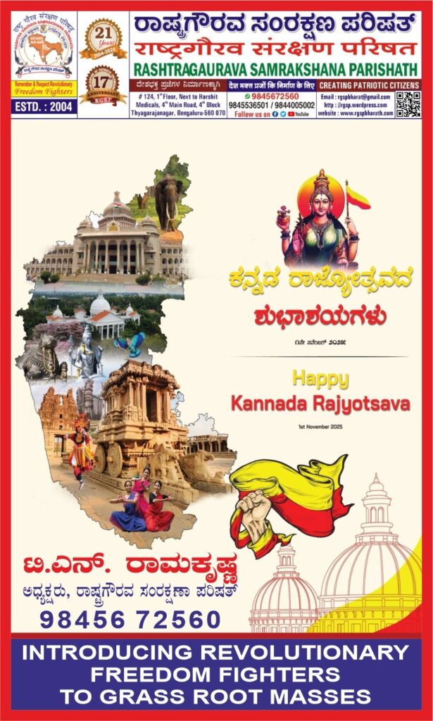 Rashtra gaurava samrakshana parishath wishes all citizens of Bharath – India residing in the State of Karnataka and all Kannadigas residing outside the State of Karnataka on the ocassion of KANNADA RAJYOSTSAVA. SIRIGANNADAM GELGE, SIRIGANNADAM BALGE. JAI HIND, JAI KARNATAKA